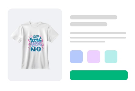 Save money and avoid any leftover stock. The products you sell are created only when your customer places an order.